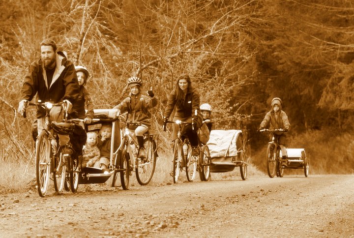 We are camped out right now in the funkiest little town called Mitchell OR, a real old west with absolutely no pretense whatsoever, just the funnest place. The town lets bikers camp in the town park for 3 days and has water, fire pits, bathrooms and playground stuff for kiddos, and right now there is only us and Tom, a young guy from out east pedaling to Virginia from Florence OR. We camped last night in the Ochoco Wilderness off the road a little bit, we got in around 7 and started setting up camp, we had dinner, rice with veggies, falafel and hummus and while I'm cooking I remember seeing all kinds of posters warning us about bears in the Ochoco, so I am getting a little paranoid about the smells we're creating here, I am trying to keep all food smelling type stuff off the ground and after dinner buttoned up super tight. We went to bed after we sat around the fire for awhile telling bear stories and I had the most realistic dream that a bear was trying to get in the tent and I kept pushing it's fat head through the tent and growling at it, just totally annoyed that it would just keep pushing back. It was so real that when I woke up in the morning I asked Ryan if he had heard all the racket of me fighting with the bear, "no, I missed that" he says dryly, "How in the world could you miss that, I was rocking the whole tent!" I snap at him, "You were dreaming Jelena " he tells me matter of factly. I seriously had to ponder this, maybe I really was dreaming, maybe not. I had to investigate this one, I got up and looked around for footprints ,nothing, food left on the trailer is untouched. It all seemed so real. We finished leftovers from the night before and start heading out when we're met by an older hippy couple on a co-motion tandem fully loaded, they tell us they are heading to Maine, Bay Harbor to be exact. These guys are firing off questions left and right about us and our set up and just thrilled to the max, Abby boasts to me that she saw them first and they were gnawing on a two-pound block of cheese with their teeth, I love them instantly, I offered them the use of my pocket knife and they refused and kept ripping off massive hunks with their chompers, their names they tell us are John and Shanna and hale from Salem, OR, we had a blast asking them questions and them asking us questions, and John the whole time he's standing there talking to us is just gawking like he had just discovered a village of leprechauns or something. After a long visit we part ways, I am sad to see them go but they are getting 60-70 mile days in and I doubt we'll be seeing them again and we are averaging about 30-35 right now. The Ochoco is gorgeous, every bit of it, giant ponderosa pines, the children call them puzzle pines because their bark looks just like puzzle pieces, high meadows with little butterflies floating around and happy little yellow flowers, we are climbing all day and finally get to the top and come to sign that says. Downhill next 7 miles, I mean this is some serious downhill, probably a 12% grade and we are just soaring, Ryan and Obby tucked themselves up and bulleted past us at 40-45 and I had every intention of catching up but something went flying off my bike and Abby tells me it's my stevia that I had in my front pack, I didn't reckon I'd find any of that anytime soon and had to stop and grab it, I guess I had left my front handle bar bag open, I probably would have lost it all as fast as we were going. We got rolling again and we are cruising in no time flat, I could not even begin to describe how beautiful this place was, just one shocking scene after another, valleys with ancient sea bed rock formations rimming the whole thing and giant grassy plains way down below with mountains busting out the ground violently and covered with amazing trees and foliage. I about made me cry, but I couldn't because I'm flying so fast I would surely going sailing over the edge of this cliff right next to us if I teared up. I am holding the handle bars so tight, scanning the road ahead like a hawk for any bumps or gravel patches, with wind flapping my cheeks around like laundry on the line, Abby is trying to talk to me but all her noise is falling behind her, I glanced her face in the mirror and she is all smiles from ear to ear, she lives for this kind of stuff, little junkie. When we get to bottom I asked her what she had said and she told me she was yelling for me to pedal like she was. We reach flat land and pedaling seems so hard now after that and it is significantly hotter for sure, I had to shed the jacket and hat I was wearing and that still wasn't enough, we were now entering Mitchell, we were all talking excitedly for days about the captive bear they kept there at the local gas station, it was supposedly so tame, you could wrestle with it and we really couldn;t wait to meet him, we stopped first though at a coffee shop heralding famous maple bars and the kids asked how far it was to the bear, the lady at the coffee place tells us that they just moved the bear to a ranch outside of town because he was getting too big, we were bummed but when we rode on into town it all seemed to get better, this place is so cool. Old West mining town that is stuck in time, I mean, Sisters was cute in that Disneyland sort of way, McDonalds with a western storefront scene, but this here is the real thang. We roll into the park and there is John and Shanna eating their lunch with Tom, we have a happy little reunion but after a bit they gotta go, they are serious about miles. I don't understand how it was so hard to part ways with people you just met this morning but I am struggling. Tom is staying behind and we get to chat with him a while and soon Ryan takes the kids off exploring the town, they come back hours later telling me excitedly about all the scorpions they caught, and then they take off again and it's been hours more, it's going on 9:30 and no sign, where could they be, this town is only a couple 